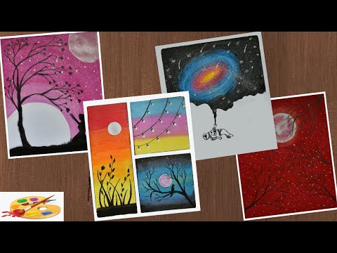 4 Super Easy Painting Tutorials For Beginners - Drawing of Nature - Creative Drawing Ideas - Nature Creative Easy Sketches For Beginners